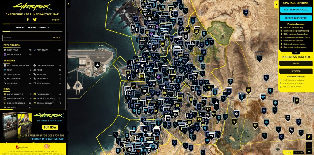 - Main site contains detailed, revealed and full Maps for Cyberpunk 2077 with walkthrough for each zone with locations of all secrets.